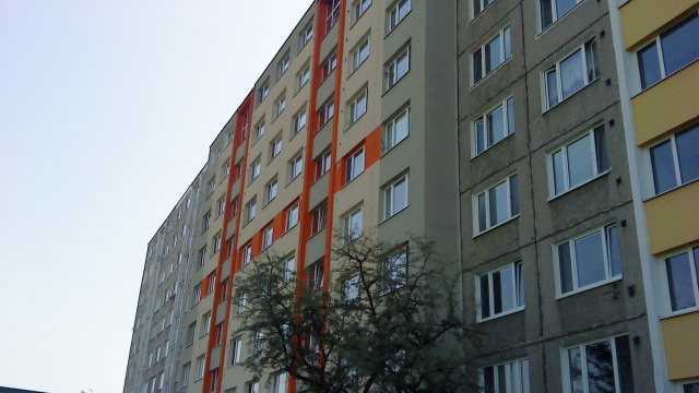 Zateplenie bočnej časti fasády. Realizácia prebehla na ulici Povstania českého ľudu