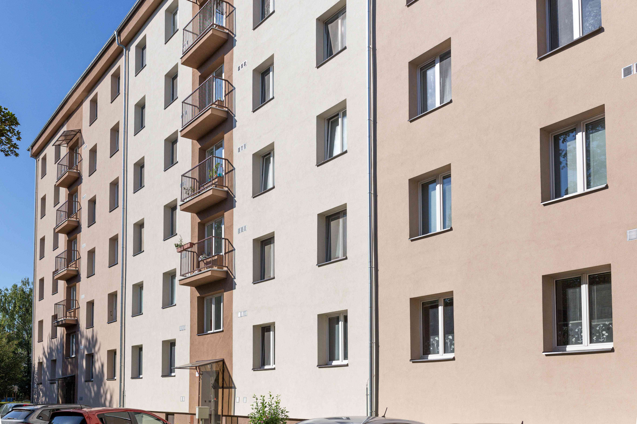 Stavebné úpravy pri tejto komplexnej obnove bytového domu spočívali v zateplení obvodového plášťa kontaktným zatepľovacím systémom na báze minerálnej vlny, sanácií balkónov vrátane výmeny zábradlí. Taktiež sme zatepľovali pivnice, priestory domového vybavenia a vstupné vestibuly, Strechu sme zatepľovali tepelnoizolačnými doskami na báze EPS dosiek. Rovnako sme realizovali osadenie nových markíz nad hornými balkónmi, sanáciu vlhkého muriva, rozdelenie pivníc novými priečkami, výmenu výplní stavebných otvorov, nový odkvapový chodník, výmenu rozvodov a prvkov elektroinštalácie a hydraulické vyregulovanie rozvodov vykurovania. Rok realizácie 2023/2024.