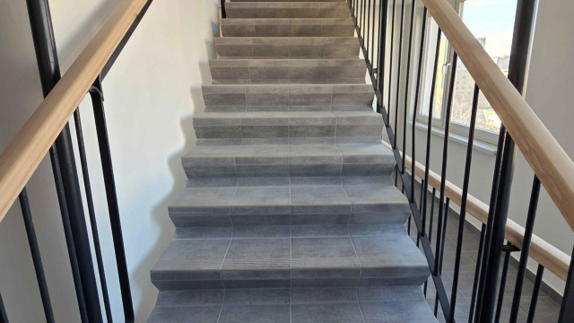 Obnova interiéru tohto bytového domu predstavuje rekonštrukciu podlahy v spoločných priestoroch, výmenu dverí a svietidiel a realizáciu nových sadrových omietok. Pristúpime k výmene vstupných brán, čo predstavuje montáž nových oceľových dverí JANSEN a zabudovanie zostavy poštových schránok. Nebude chýbať výmena dlažby pred vstupom.