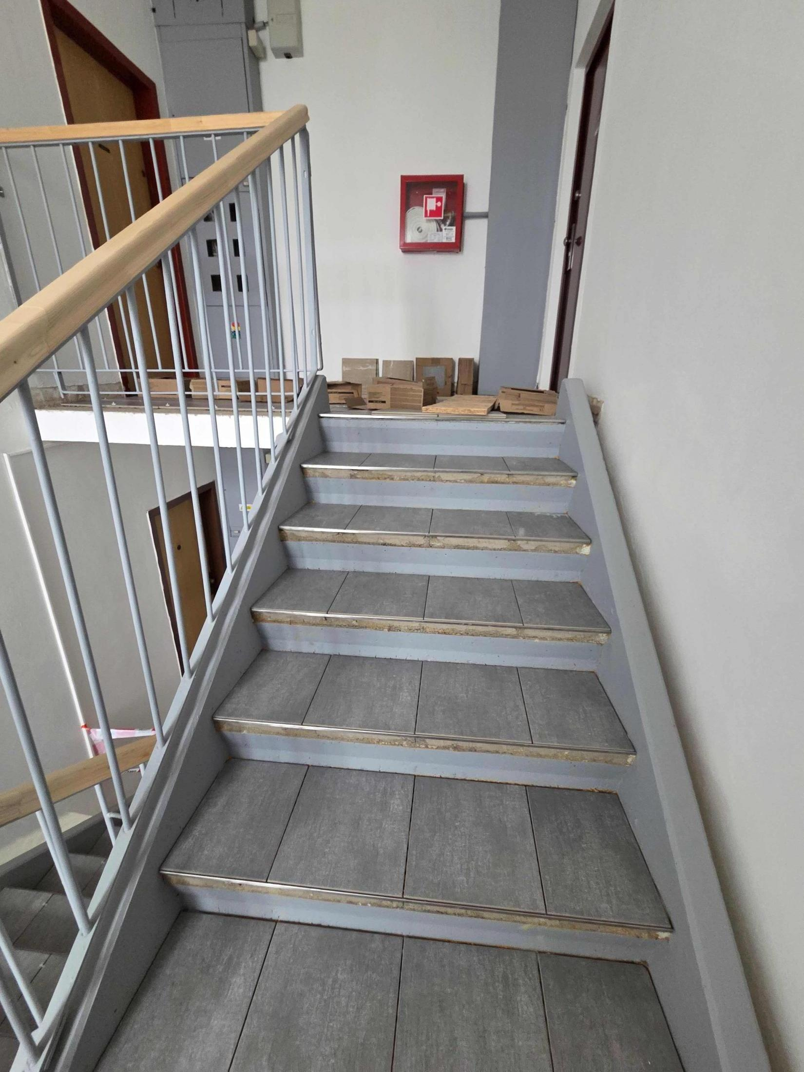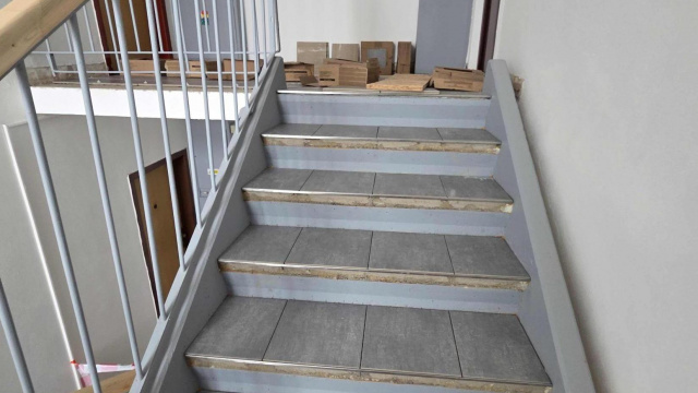 Obnova interiéru tohto bytového domu predstavuje rekonštrukciu podlahy v spoločných priestoroch, výmenu dlažby pred vstupom a zateplenie výťahových strojovní.