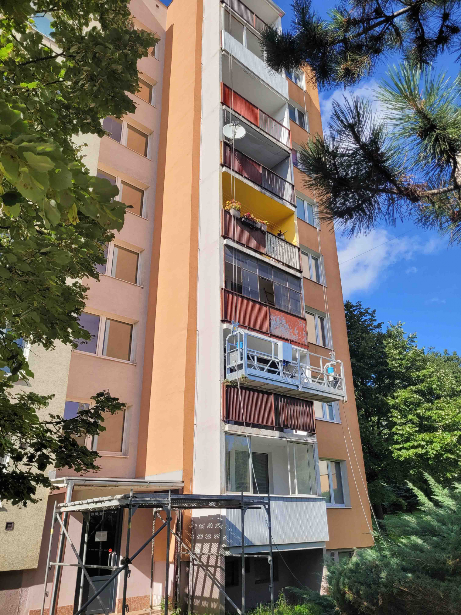 Obnova tohto bytového domu spočíva v zateplení obvodového plášťa, sanácii loggií a dodávke a montáži zasklenia.