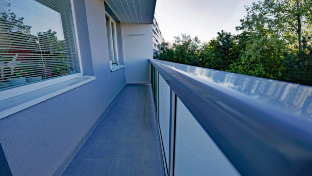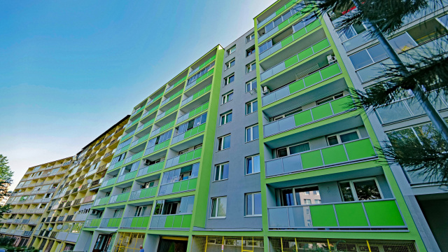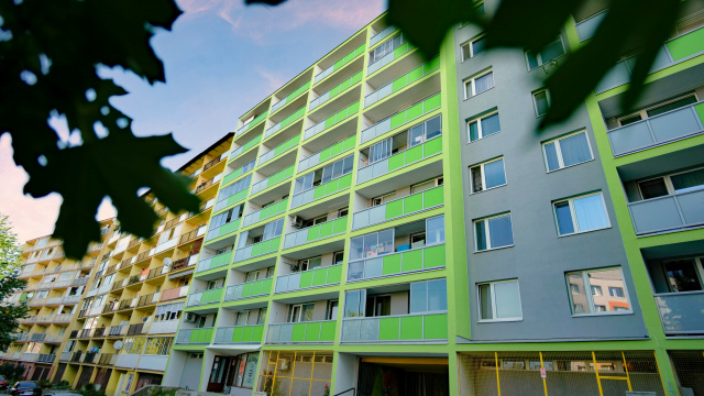Rekonštrukcia bytového domu Krosnianská 29,31 spočívala v odstránení systémových porúch a zateplení stien a stropov loggií. Taktiež sme realizovali náter na priečelných stenách bytového domu prémiovým silikonovým fasádnym náterom PCI Multitop FS. Rovnako sme obnovili zvislé vedenie bleskozvodu a zrealizovali novú hydroizolačnú vrstvu striešok nad loggiami. V tomto prípade výplň hliníkového zábradlia tvorí bezpečnostné matné sklo ale aj rovnako bezpečné výplňové dosky Fundermax vo výraznej zelenej farbe ktoré sú farebne zladené s povrchovou úpravou čielok loggií. Obnovu bytového domu Krosnianská 29,31 sme realizovali priamo pre investora. Rok realizácie 2023.